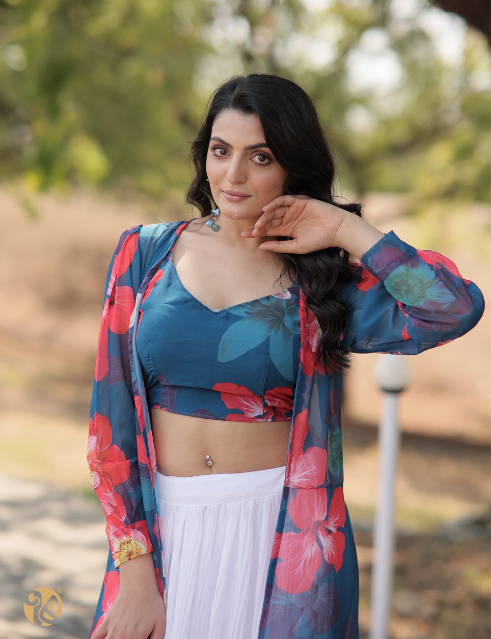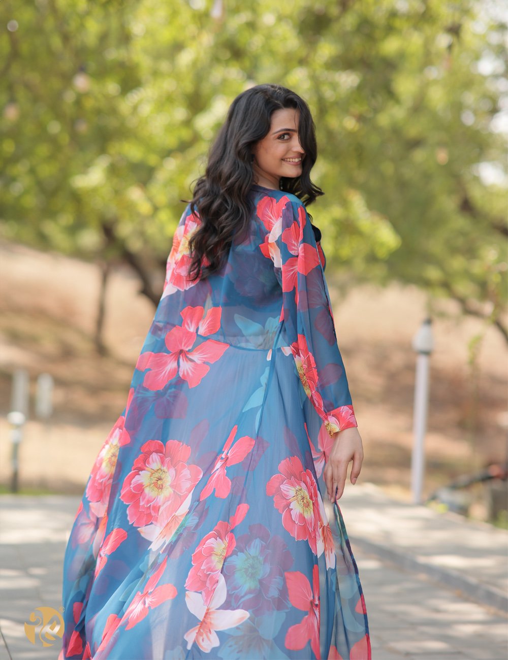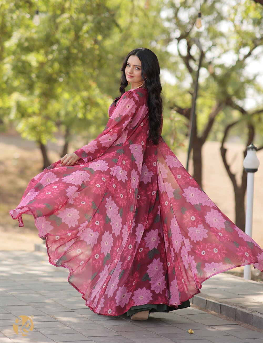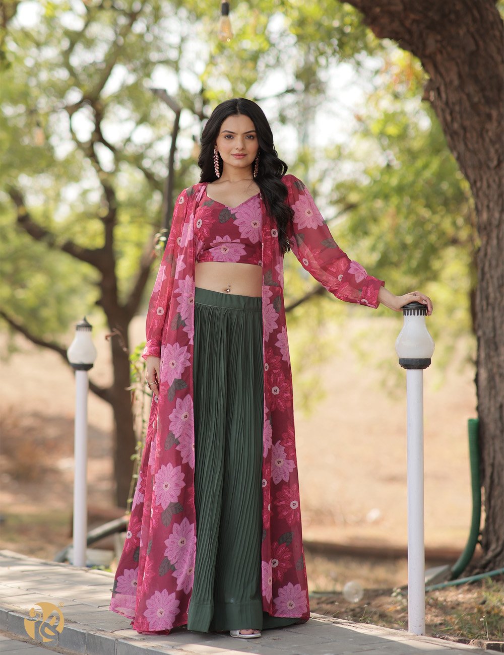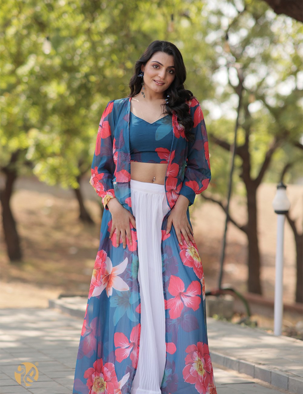 Karovi New Faux Georgette Lehenga with Digital Flower Print Choli and Shrug
